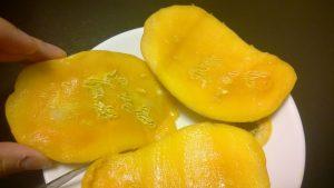 3It has to do with the initial harvesting process. After mangoes are picked, they’re then sent to a 115°F hot water bath to kill any potential fruit flies or larvae on the fruit. They sit in this water for about an hour. However, if a mango hasn’t yet matured, the hot water can confuse the fruit. The mango’s metabolism begins to speed up and causes fermentation due to the lack of oxygen, thus generating alcohol and carbon dioxide. The carbon dioxide has nowhere to escape, so it starts to create little white pockets in the flesh of the fruit.